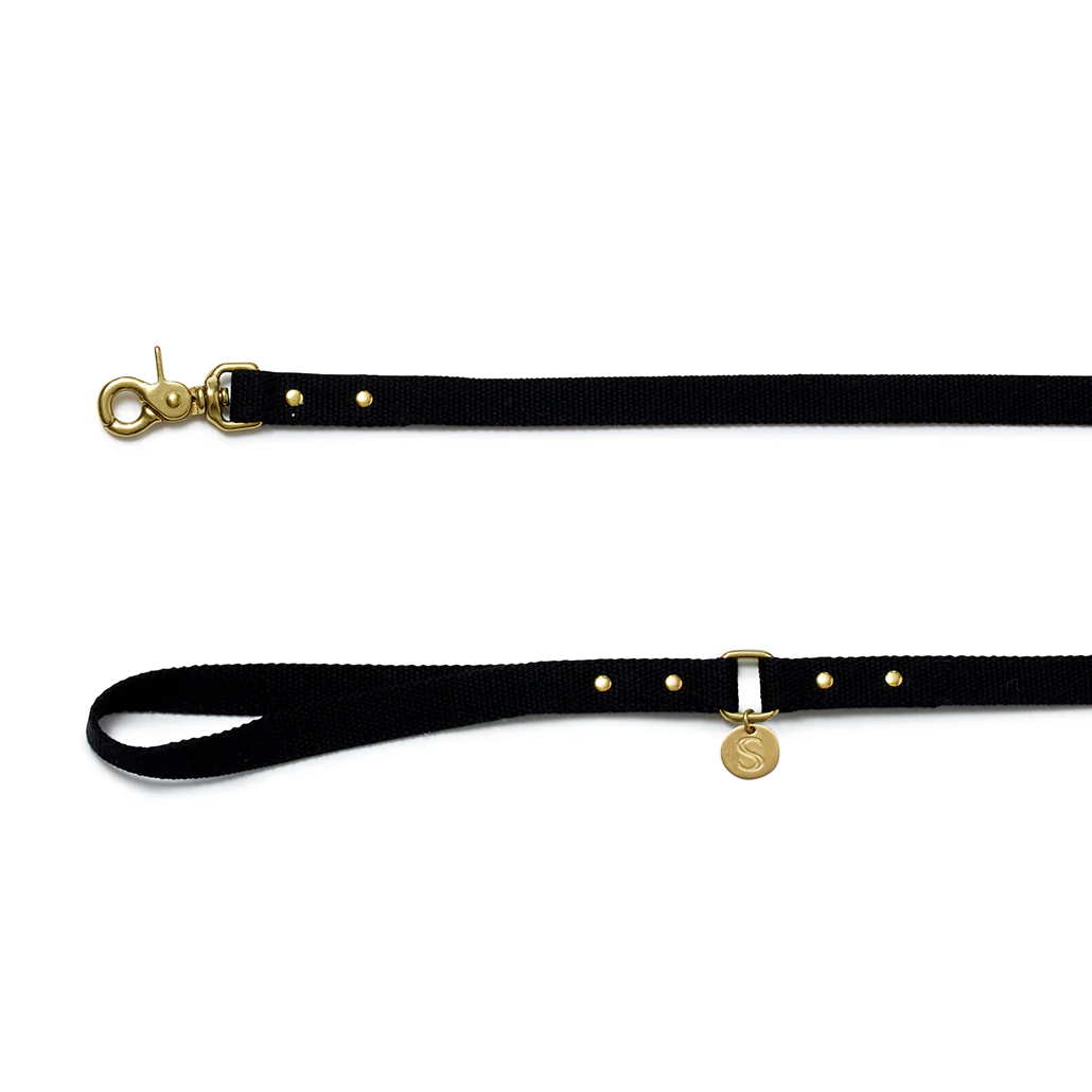 Expand your walk wear wardrobe, with the Sebastian Says Webbing Lead. Designed with the active dog in mind, its cotton/nylon webbing construction makes for comfortable and secure adventures with your best friend. The Webbing Lead has been hand crafted by artisans in classic colourways, and finished with our signature solid brass hardware and branded SS charm.